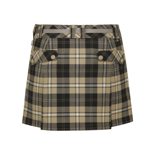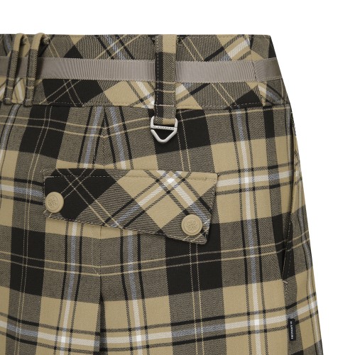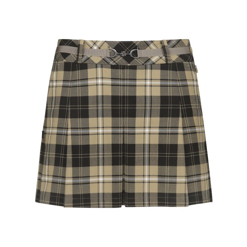 여성 벨트 장식 체크 플리츠 큐롯 스커트