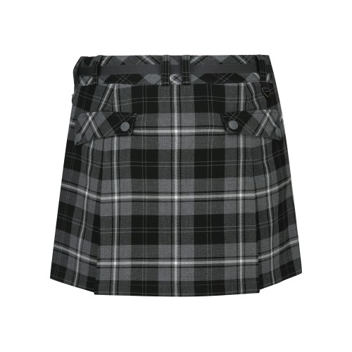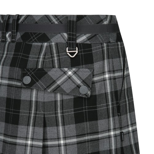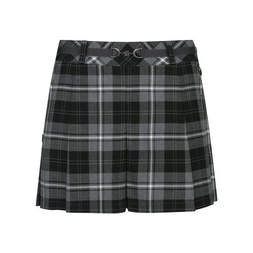 여성 벨트 장식 체크 플리츠 큐롯 스커트