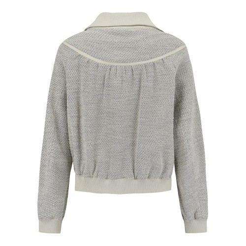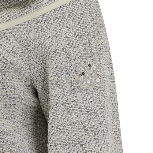 여성 별 심볼 니트 배색 트위드 점퍼
