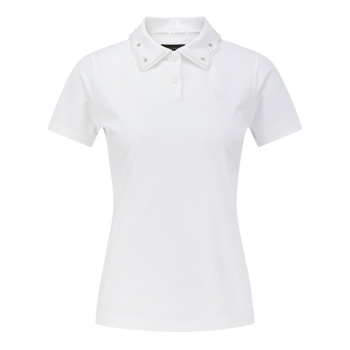 여성 별 심볼 아일렛 칼라 반팔 티셔츠