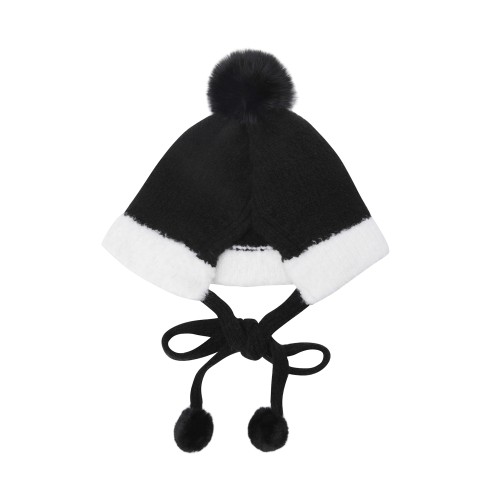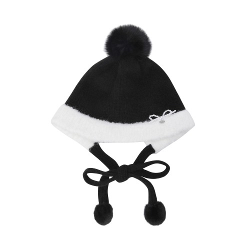 여성 리본 폼폼이 스트랩 비니