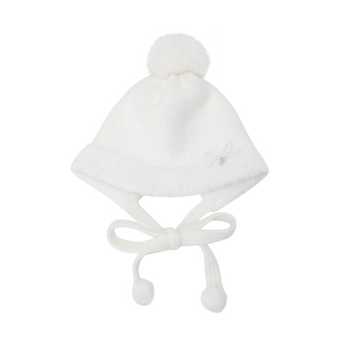 여성 리본 폼폼이 스트랩 비니