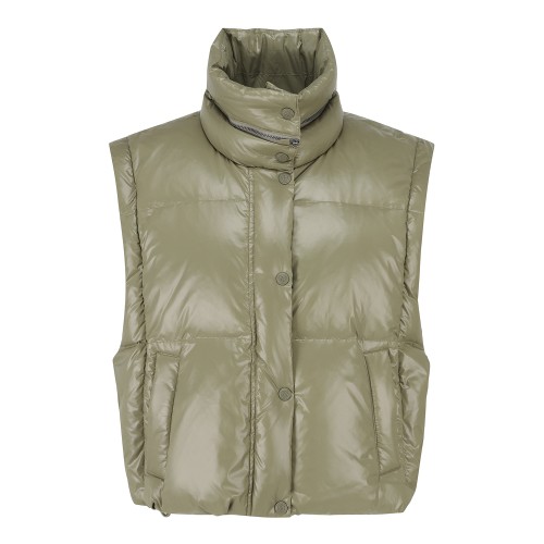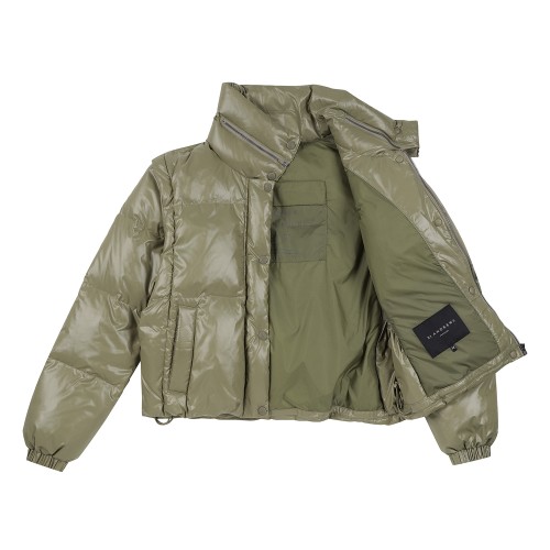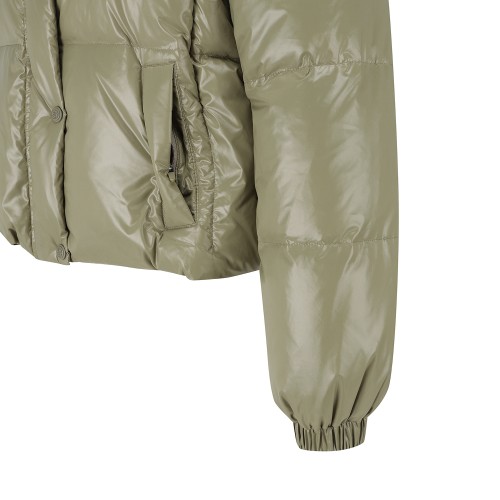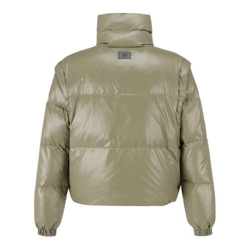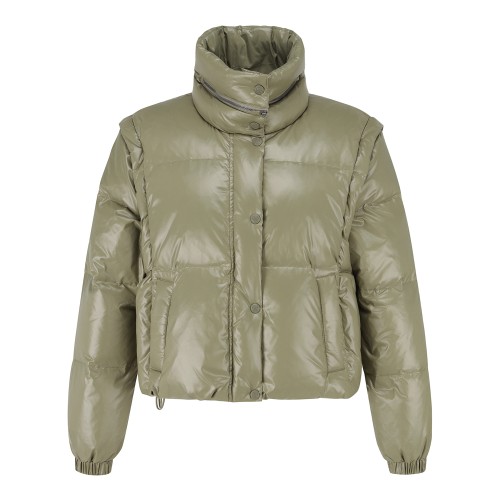 여성 탈착 슬리브 글로시 구스 다운 점퍼