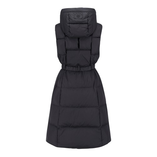 여성 후드 탈착 벨티드 롱 구스다운 점퍼