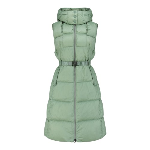 여성 후드 탈착 벨티드 롱 구스다운 점퍼
