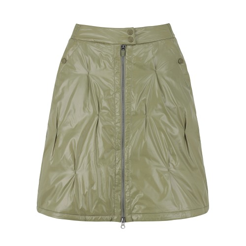 여성 앞 지퍼 유광 밴딩 미디 패딩 스커트