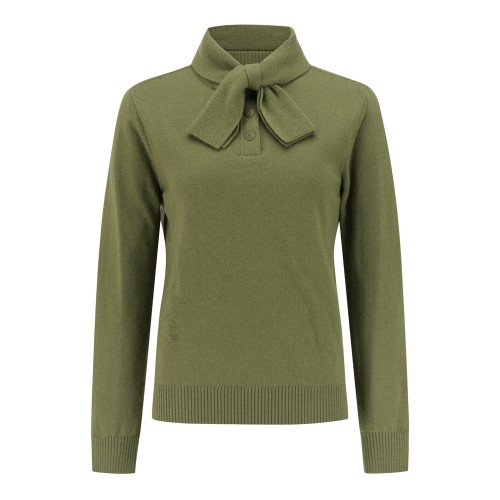 여성 울 캐시 리본 타이 방풍 니트