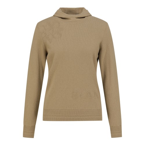 여성 엠보 심볼 캐시미어 믹스 방풍 후드 니트