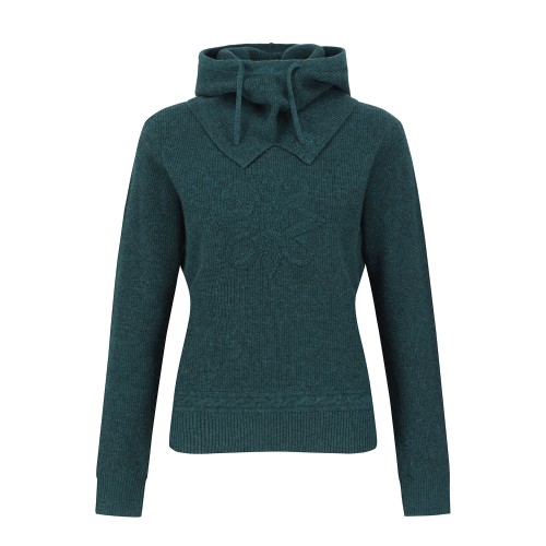 여성 엠보 심볼 캐시미어 믹스 방풍 후드 니트