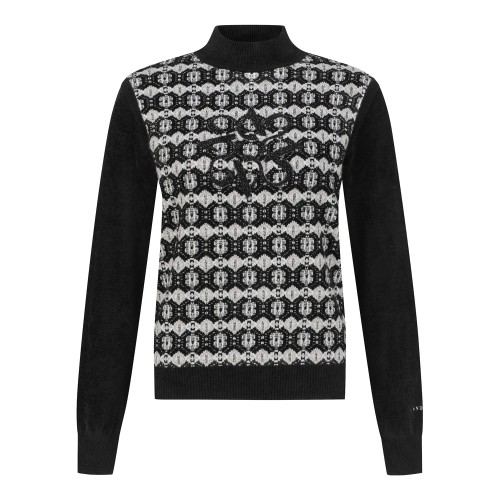 여성 비즈 와펜 자카드 방풍 니트