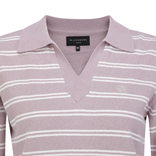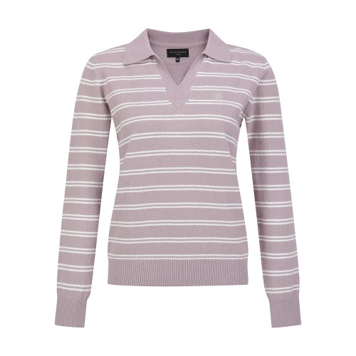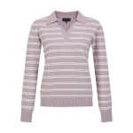 • 여성 오픈 칼라 스트라이프 긴팔 니트