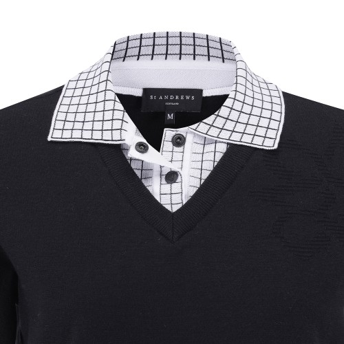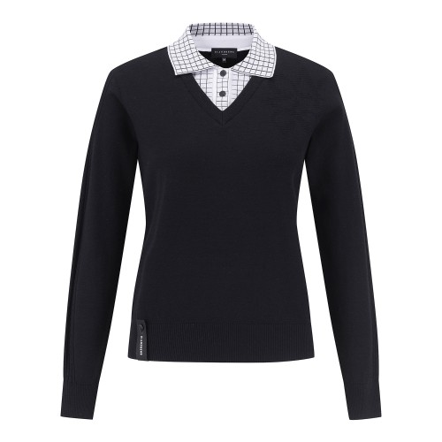 여성 별 심볼 체크 칼라 니트