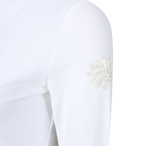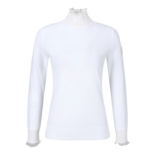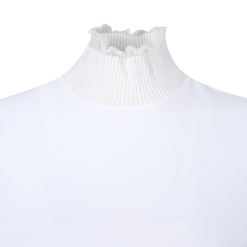 여성 골조직 프릴넥 긴팔 티셔츠