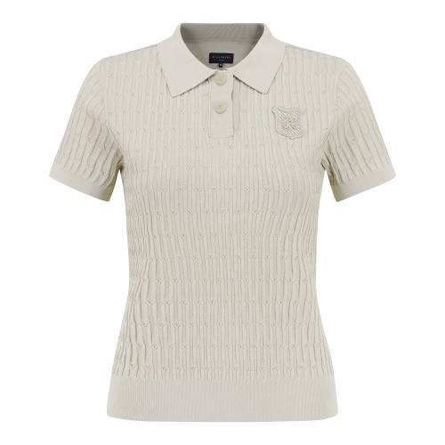 여성 별 심볼 패치 케이블 반팔 니트