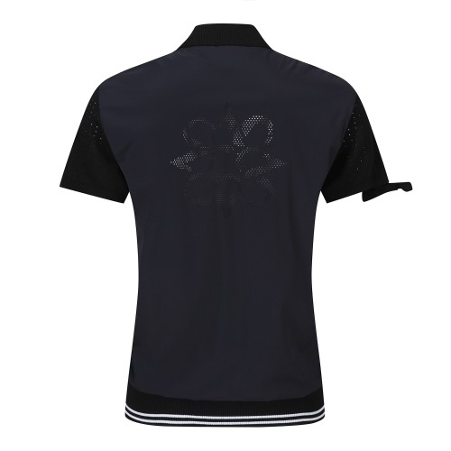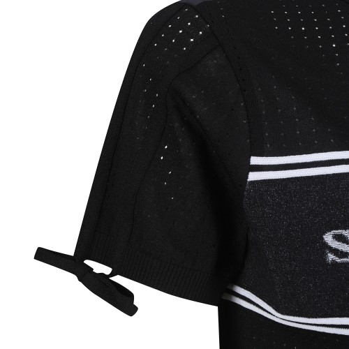 여성 우븐 블록 로고 타공 반팔 니트