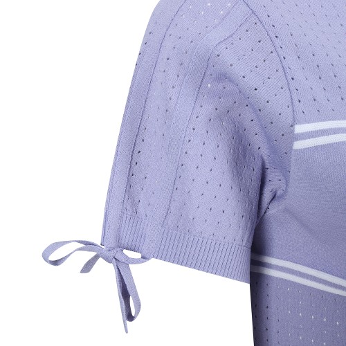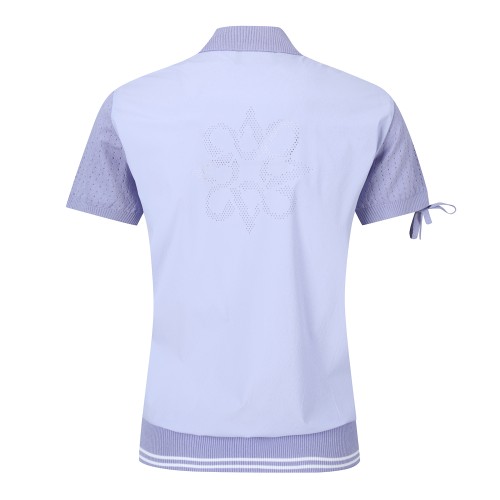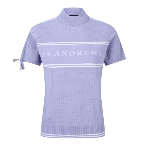 여성 우븐 블록 로고 타공 반팔 니트