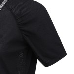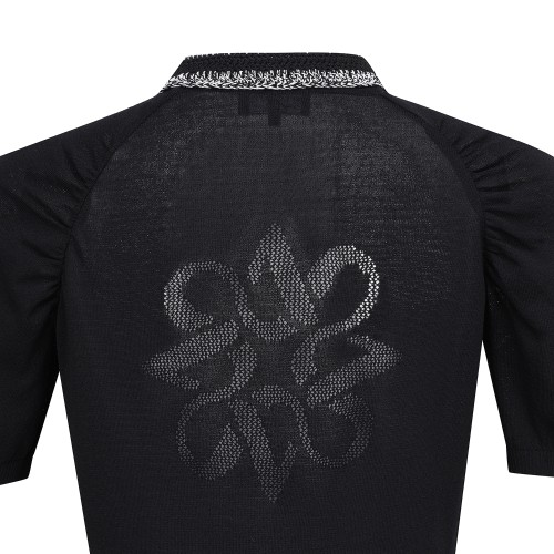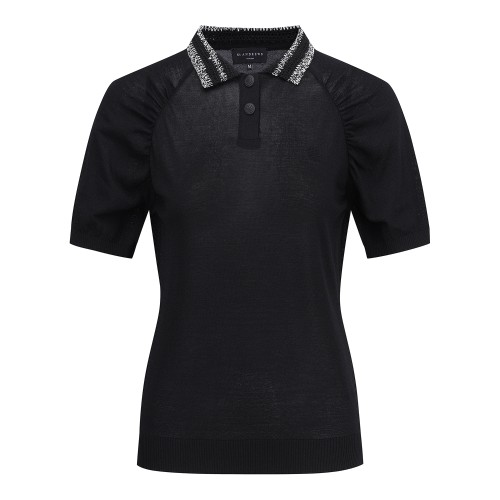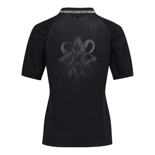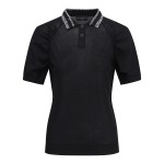 여성 우븐 블록 로고 타공 반팔 니트