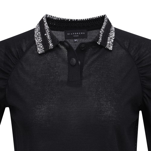 여성 셔링 슬리브 크로셰 칼라 니트