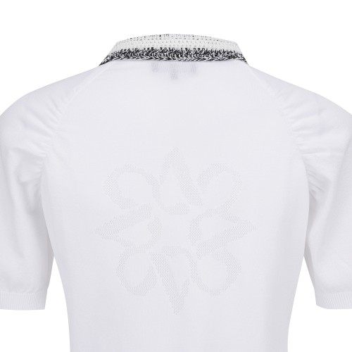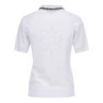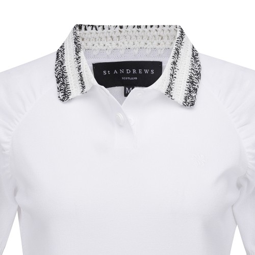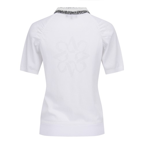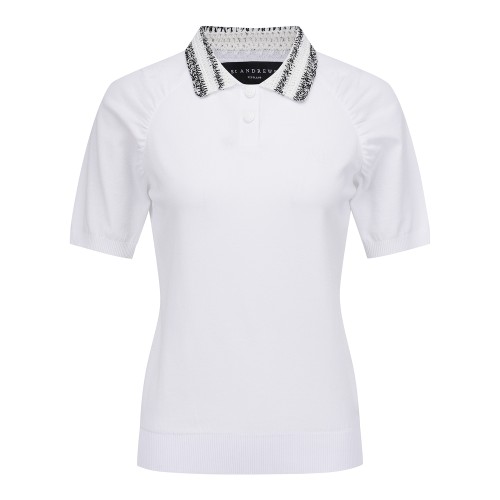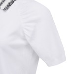 여성 셔링 슬리브 크로셰 칼라 니트