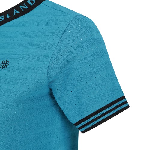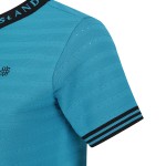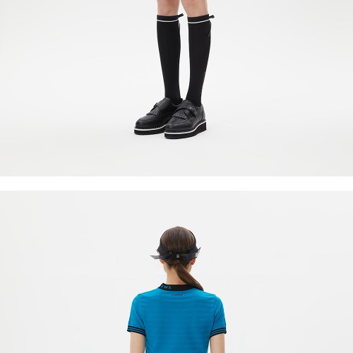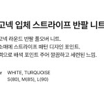 여성 로고넥 입체 스트라이프 반팔 니트