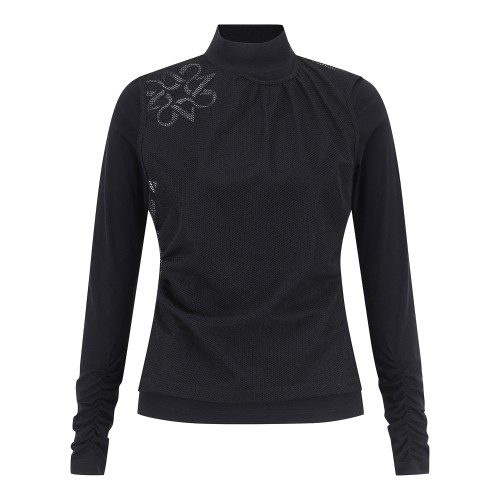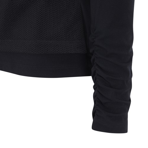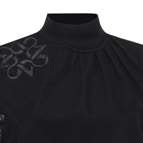 여성 메쉬 레이어 셔링 하이넥 티셔츠