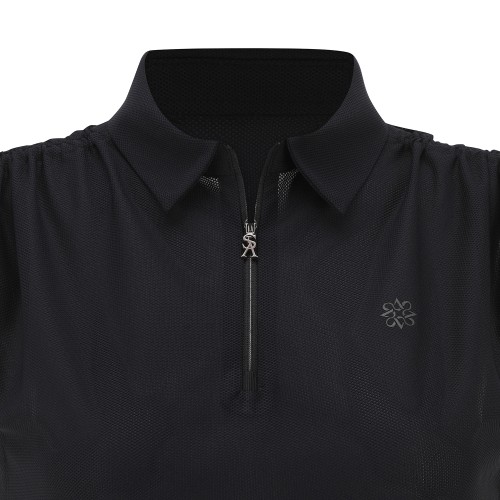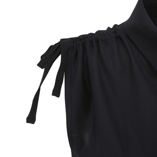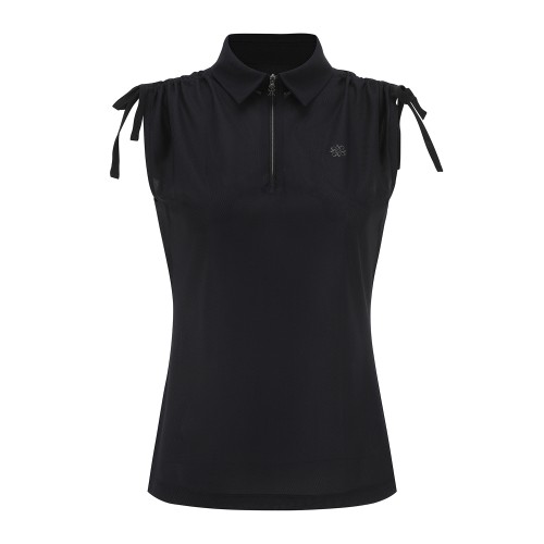 여성 스트링 집업 칼라 슬리브리스 탑