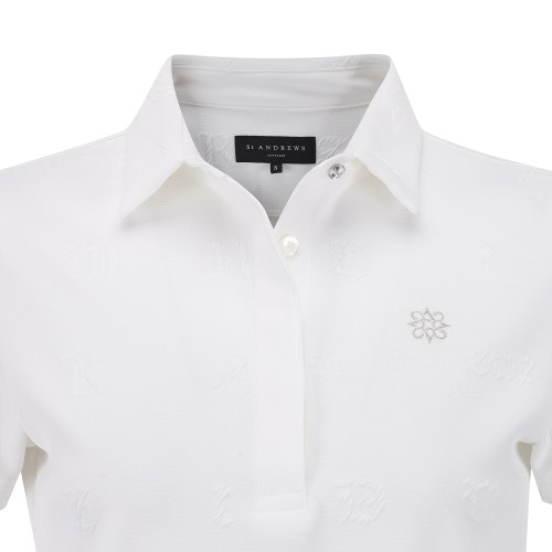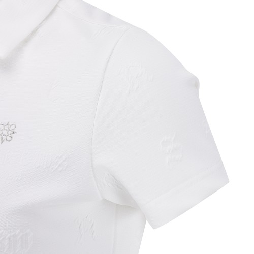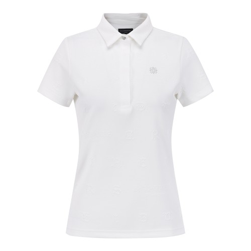 여성 별 심볼 엠보 패턴 칼라 반팔 티셔츠