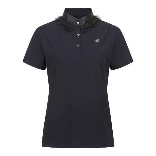 여성 탈착 메쉬 칼라 반팔 티셔츠