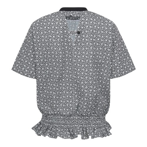 여성 뒷트임 스모킹 밴딩 프릴 반팔 점퍼