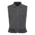 여성 프릴 스트링 헴 집업 베스트