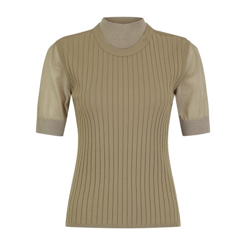 여성 골조직 레이어드 반팔 니트