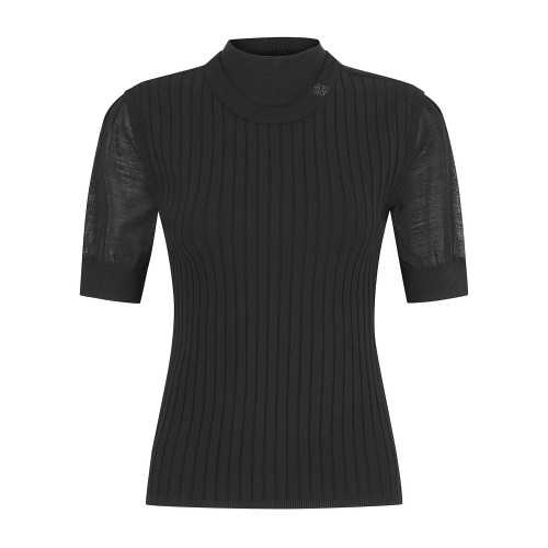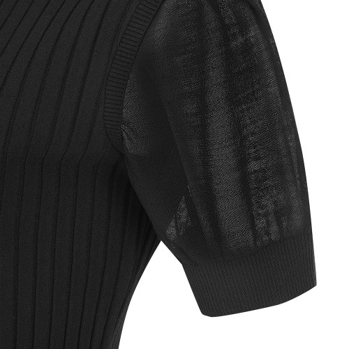 여성 골조직 레이어드 반팔 니트