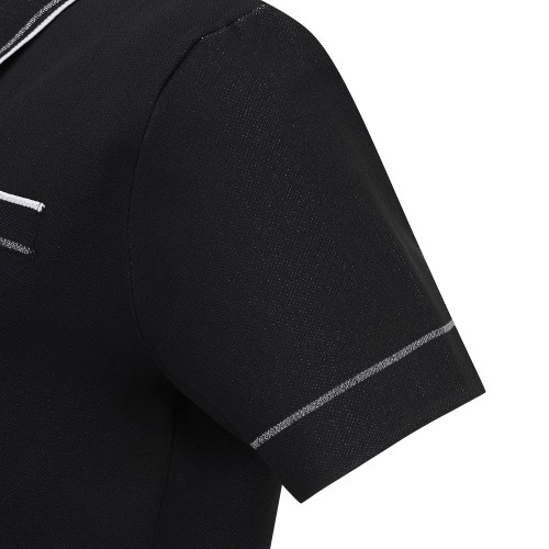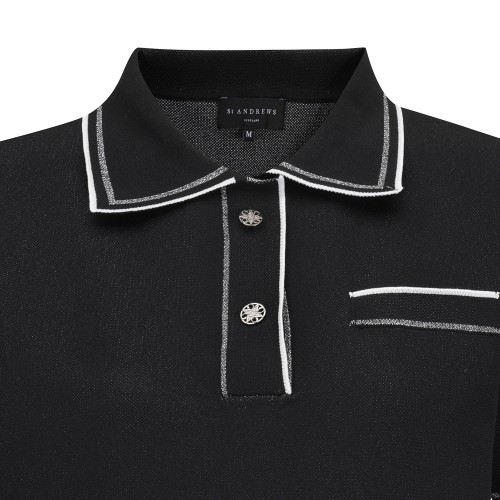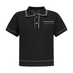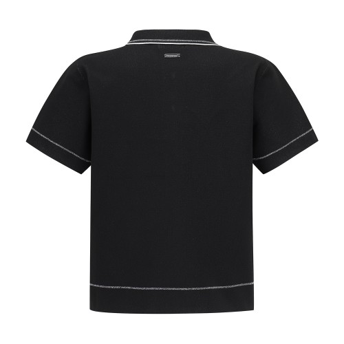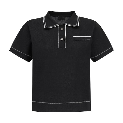 여성 글리터 라인 자카드 카라 반팔 니트