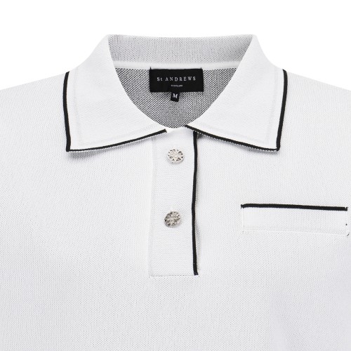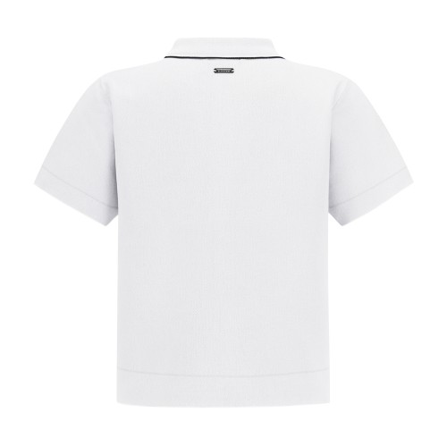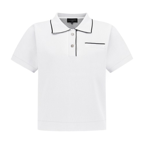 여성 글리터 라인 자카드 카라 반팔 니트