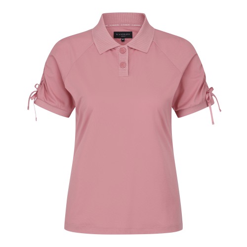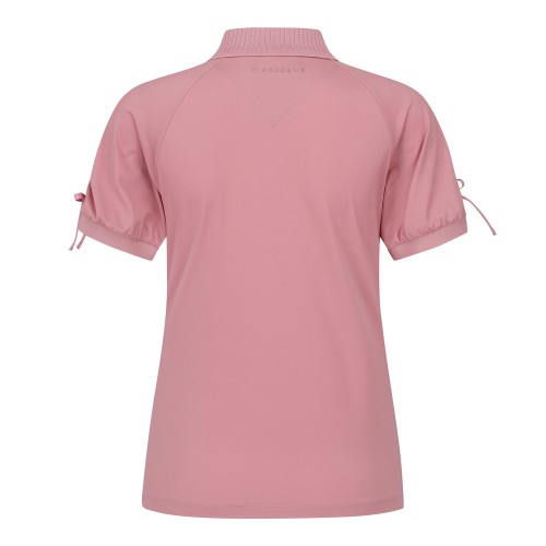 여성 셔링 커프스 니트 카라 반팔 티셔츠