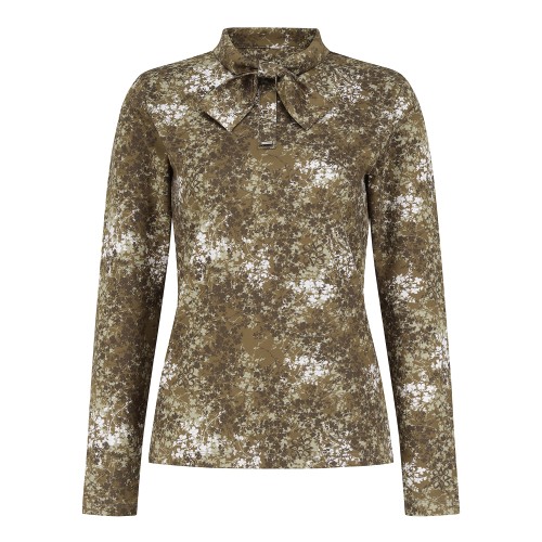 여성 플라워 패턴 타이넥 티셔츠