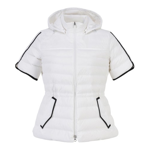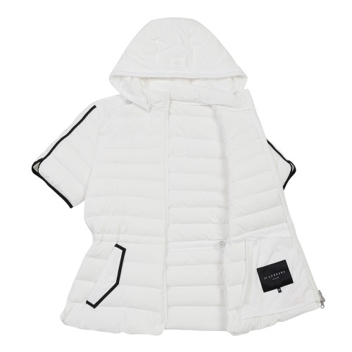 여성 탈착 후드 구스 다운 슬림 반팔 점퍼