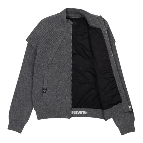 여성 별 심볼 구스 다운 블록 후드 방풍 니트 가디건