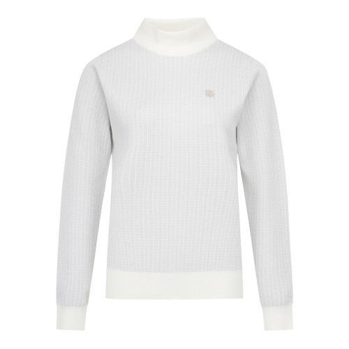 여성 별 심볼 투톤 패턴 하이넥 니트