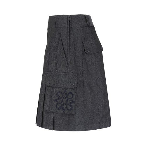 여성 벨티드 카고 포켓 백 밴딩 큐롯 스커트