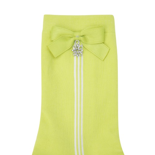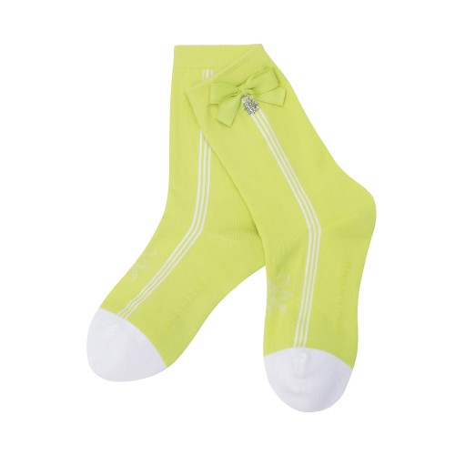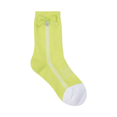 여성 리본 배색 라인 중목양말