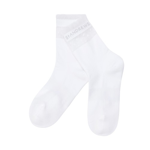 여성 로고 핫픽스 도트 투명사 중목 양말