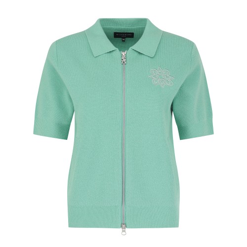 여성 별 로고 포인트 투웨이 집업 반팔 가디건