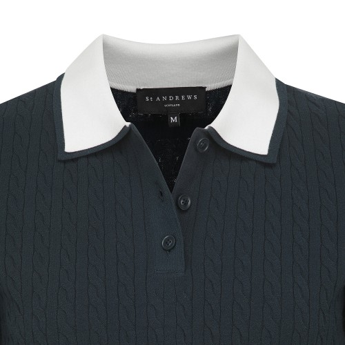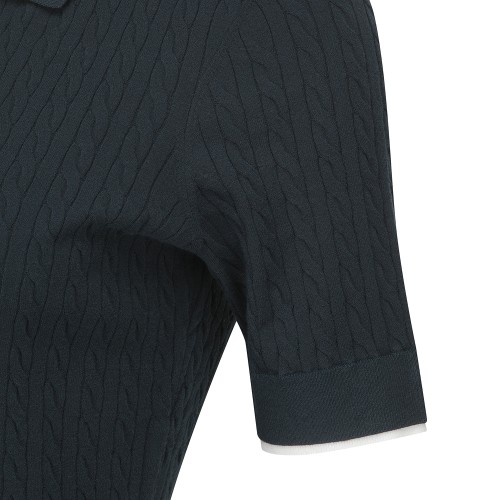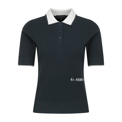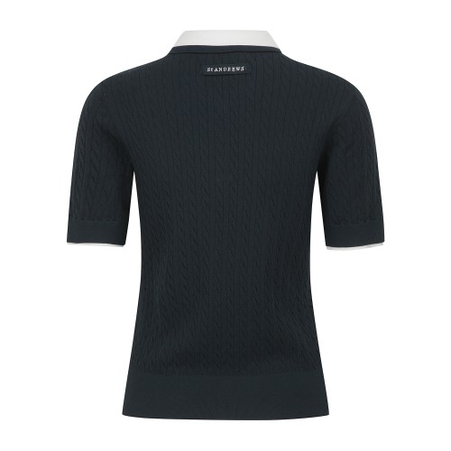 여성 배색 레이어드 케이블 반팔 니트