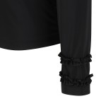 여성 소매 퍼프 프릴넥 리본 브로치 긴팔티셔츠