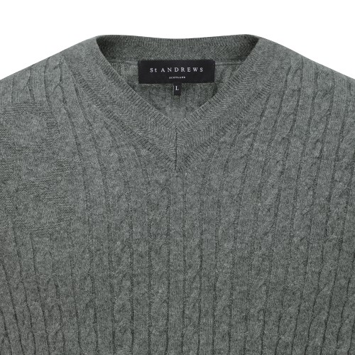 공용 별 심볼 브이넥 케이블 긴팔 니트