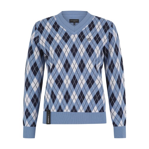 공용 브이넥 아가일 긴팔 니트