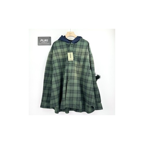 발렌시아가 오버사이즈드 체크 후드 셔츠