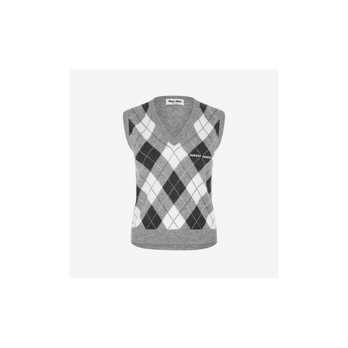 미우미우 깅엄 니트 베스트