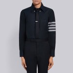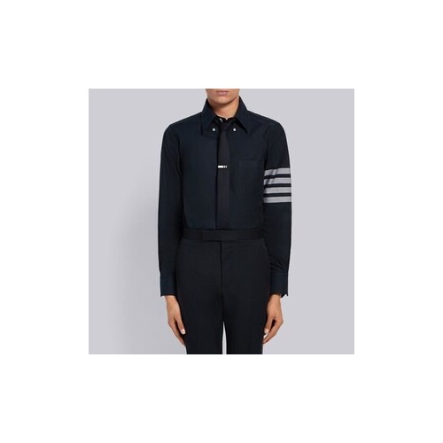 톰브라운 네이비 솔리드 플란넬 셔팅 4-바 네임택 스트레이트 핏 셔츠+0원